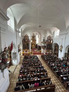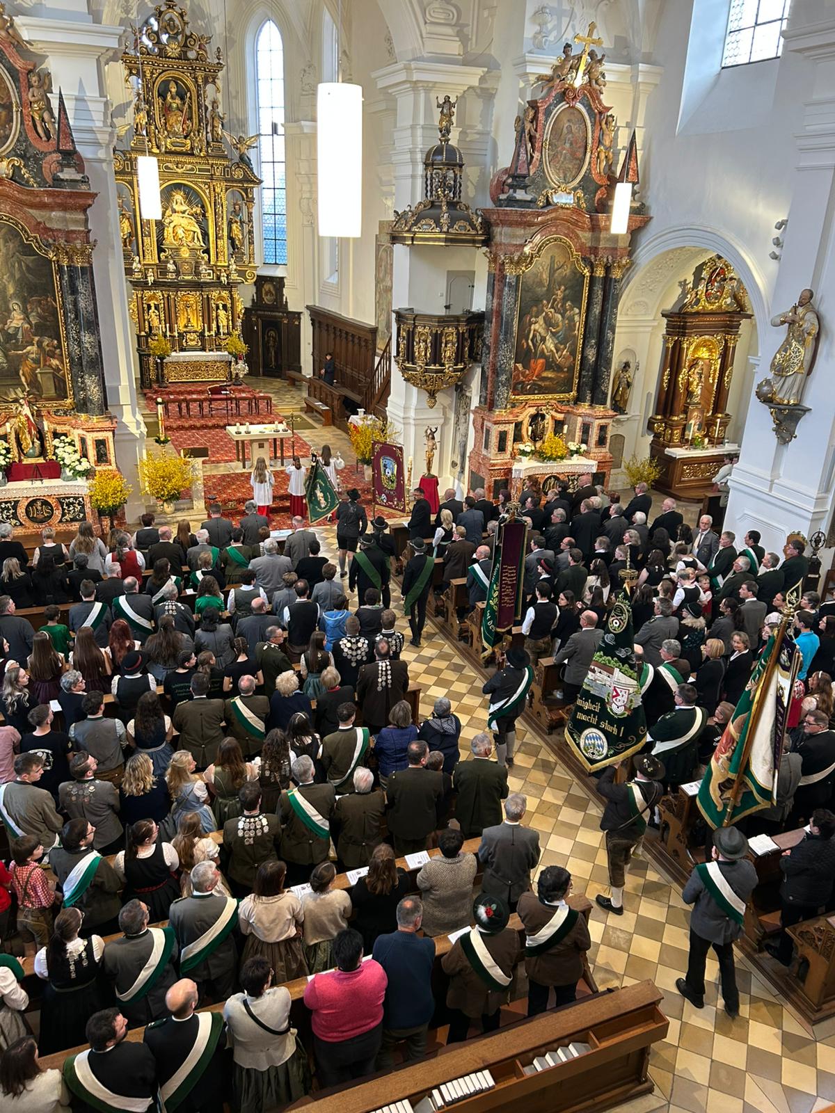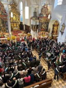Nach der Ankunft stand zunächst der Treffpunkt am Marktplatz in Wemding auf dem Programm. Beim Standkonzert der Stadtkapelle Wemding wurden die Teilnehmer und Besucher musikalisch auf den bevorstehenden Festtag eingestimmt. Im Anschluss folgte der feierliche Einmarsch in die Kirche, wo der Festgottesdienst stattfand. Dieser bot einen würdigen Rahmen, um das Jubiläum gemeinsam zu begehen und die lange Tradition des Schützenwesens im Gau zu würdigen.